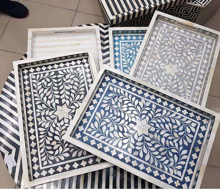 Calidad Premium personalizar bandeja de servicio con incrustaciones de hueso estilo único bandeja de servicio de desayuno elegante decoración de Mesa para el hogar bandejas con incrustaciones de hueso