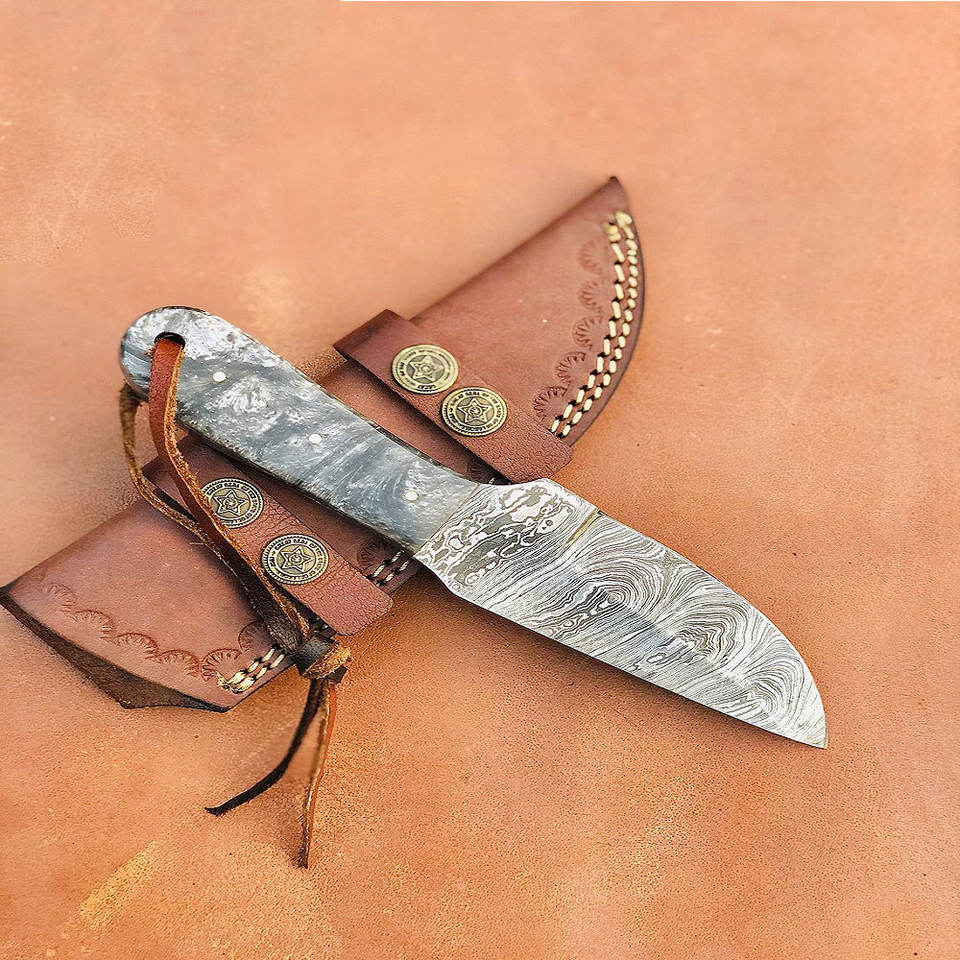 Cuchillo de caza casero de acero de Damasco de calidad superior a la venta, cuchillo de caza para acampar de Damasco con logotipo personalizado