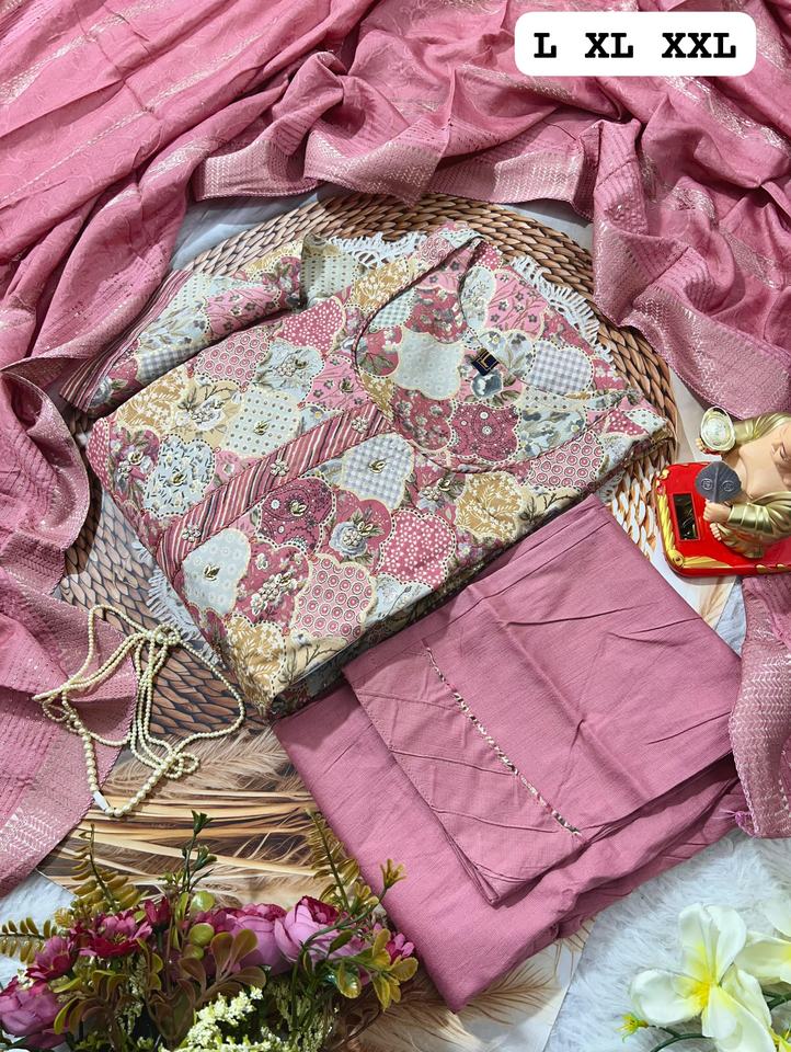 Nombre del producto:De Buena Calidad Muselina Con Bordado Trabajo Kurti Pant Y Dupatta