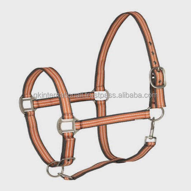 Correa de nailon con patrón de rayas de lujo, collar de cabeza de caballo de nailon 100% con acabado satinado de alta calidad, hardware