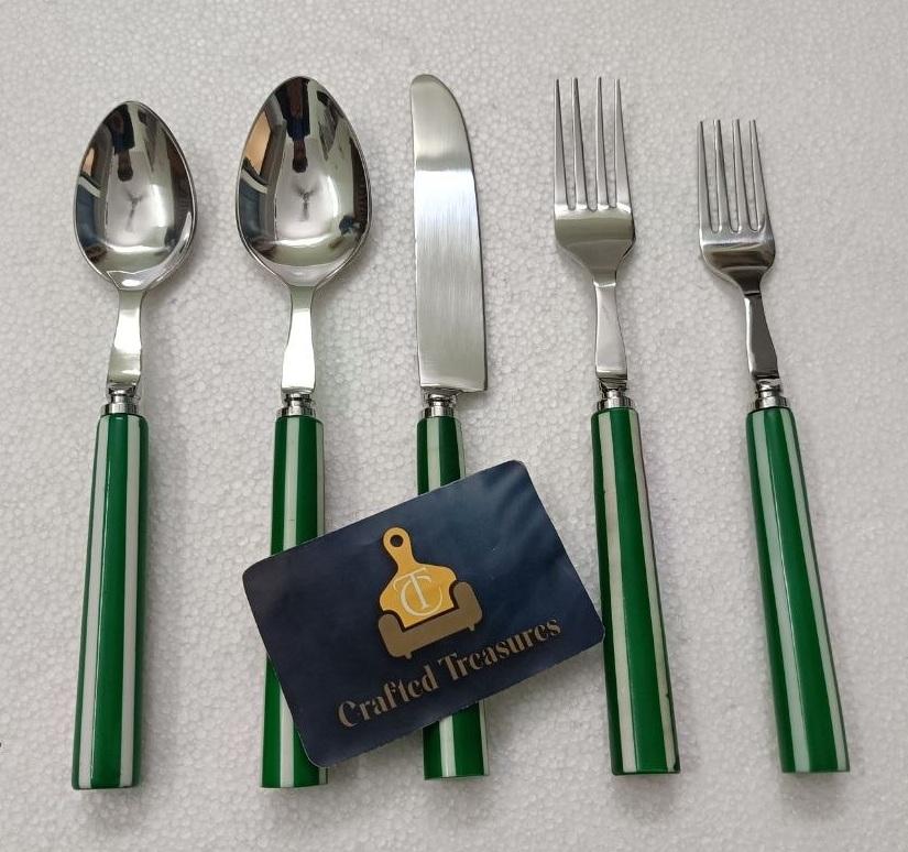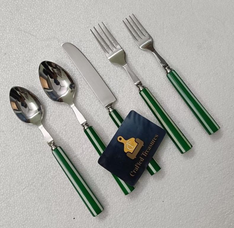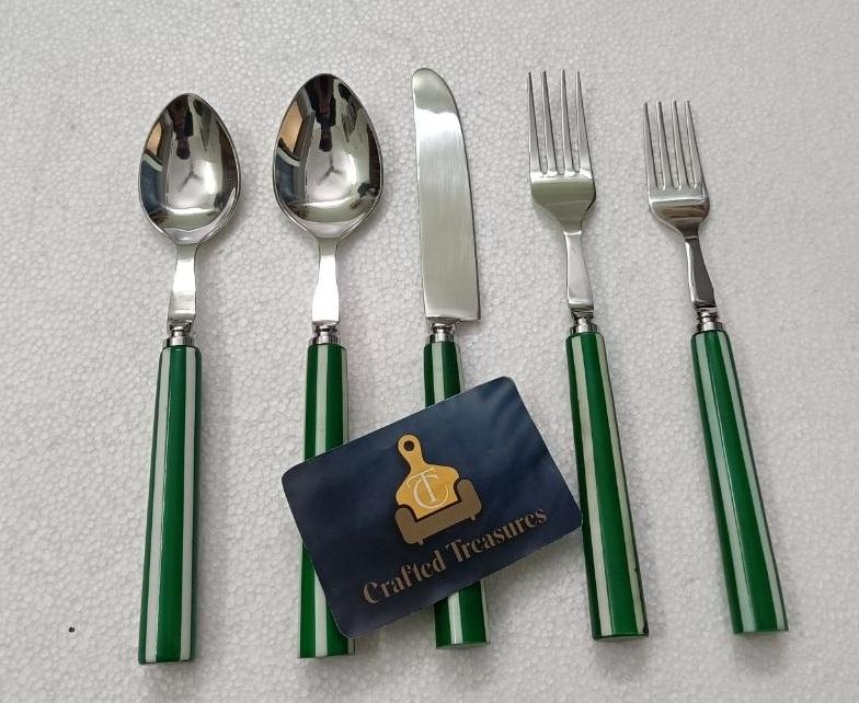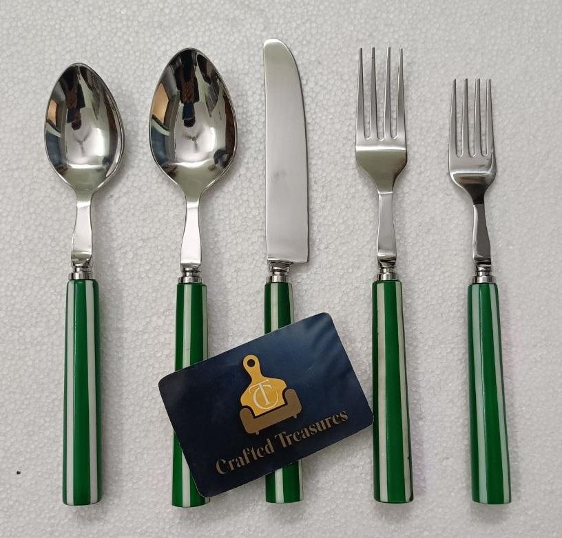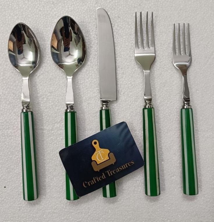 Juego de Cubiertos de Primera Calidad con Mango de Resina, Acero Inoxidable 18/8, Vajilla, Decoración para el Hogar y Cubertería Duradera de 5 Piezas