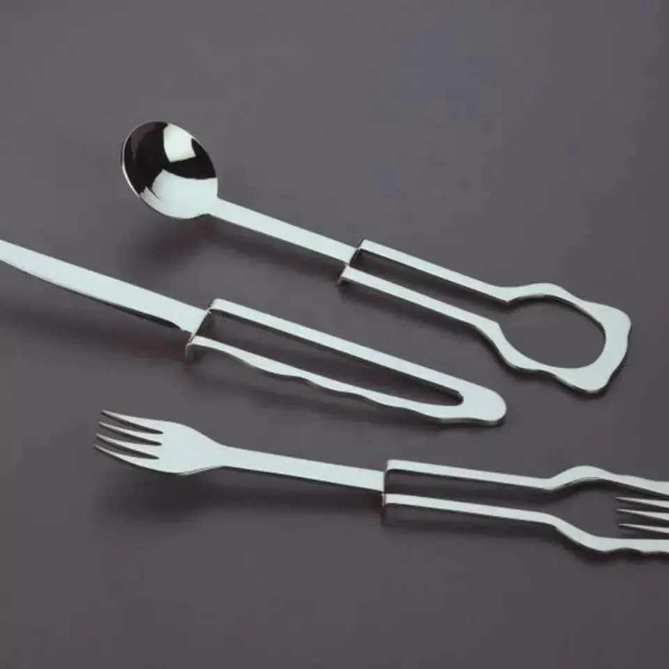 Cubiertos de calidad superior Cubiertos Color negro Latón Ramita Mango Cabeza de acero inoxidable Cubiertos Cuchara Tenedor Servir Ware Tabletop