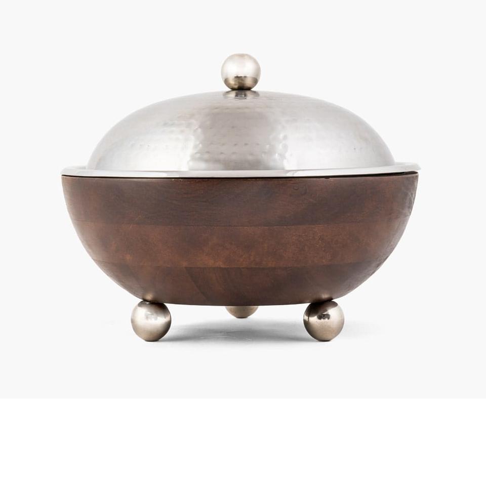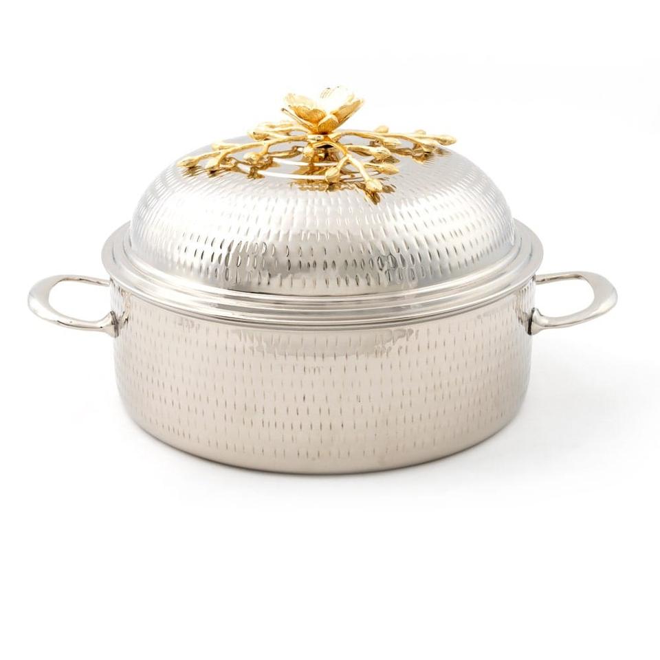 Olla Caliente para Servir Alimentos de Primera Calidad, Acabado Niquelado, Tapa Redonda, Cazuela para Servir Alimentos, Olla Caliente para el Hogar y Hoteles