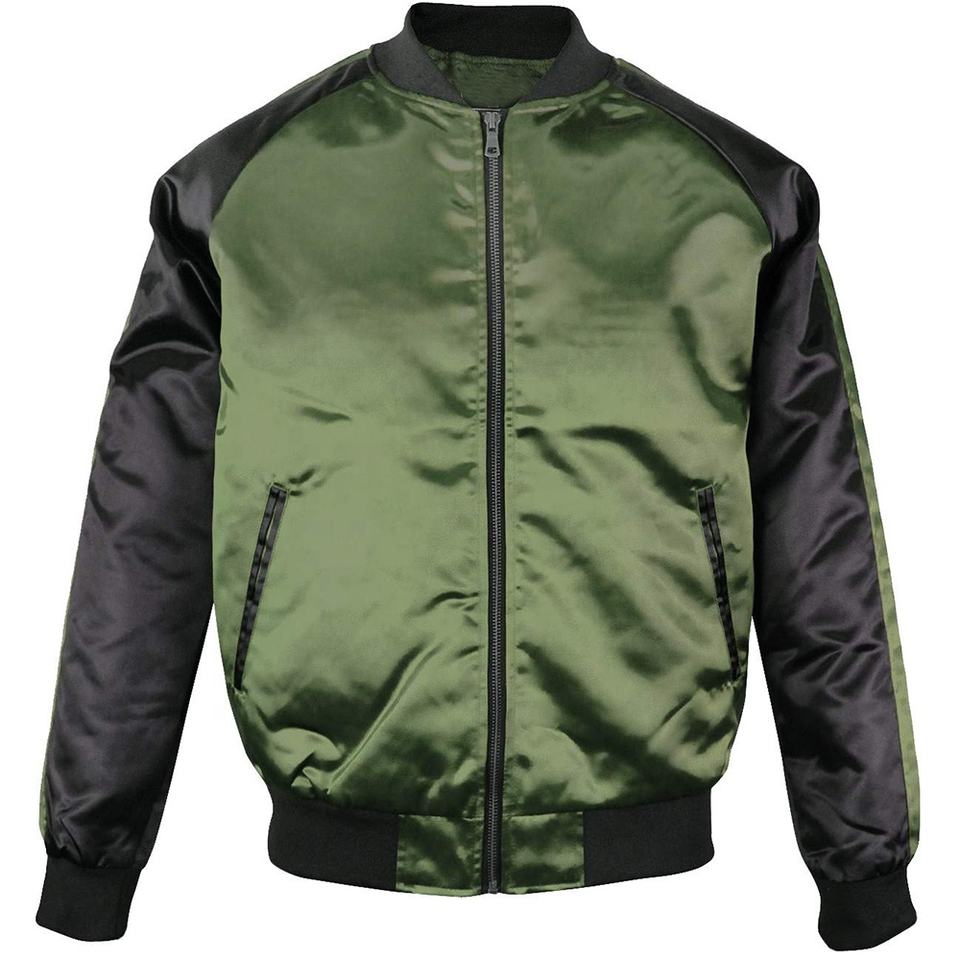 Chaqueta Bomber de Satén de Primera Calidad con Cierre Completo, Forro Acolchado, Dos Tonos, Bordado 100% Seda, Cierre de un Solo Botón