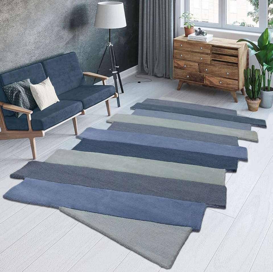 Alfombra Antideslizante de Lana/Viscosa de Primera Calidad, Diseño Geométrico, Hecha a Mano, Color Beige, Apta para Mascotas, a Bajo Precio, INDIAN TEXTILES H/L