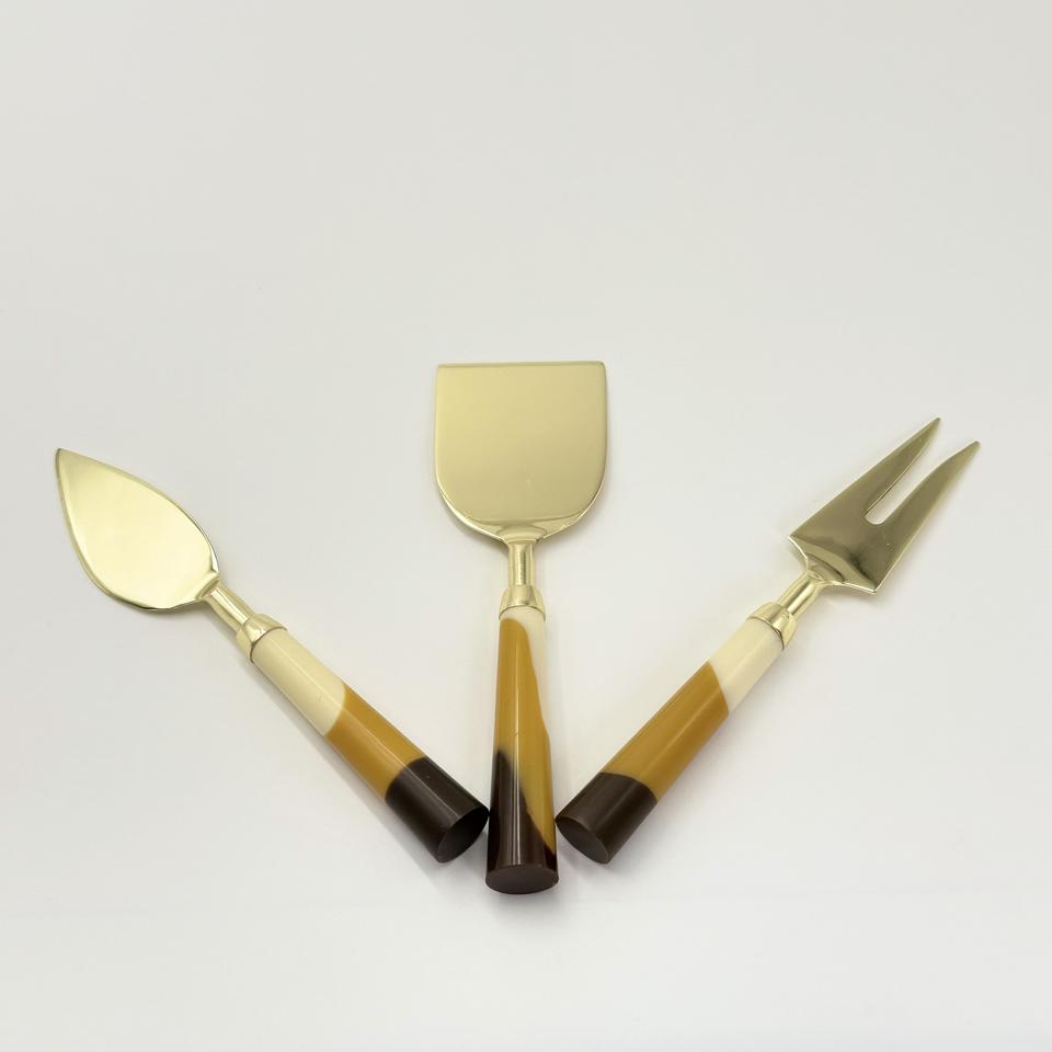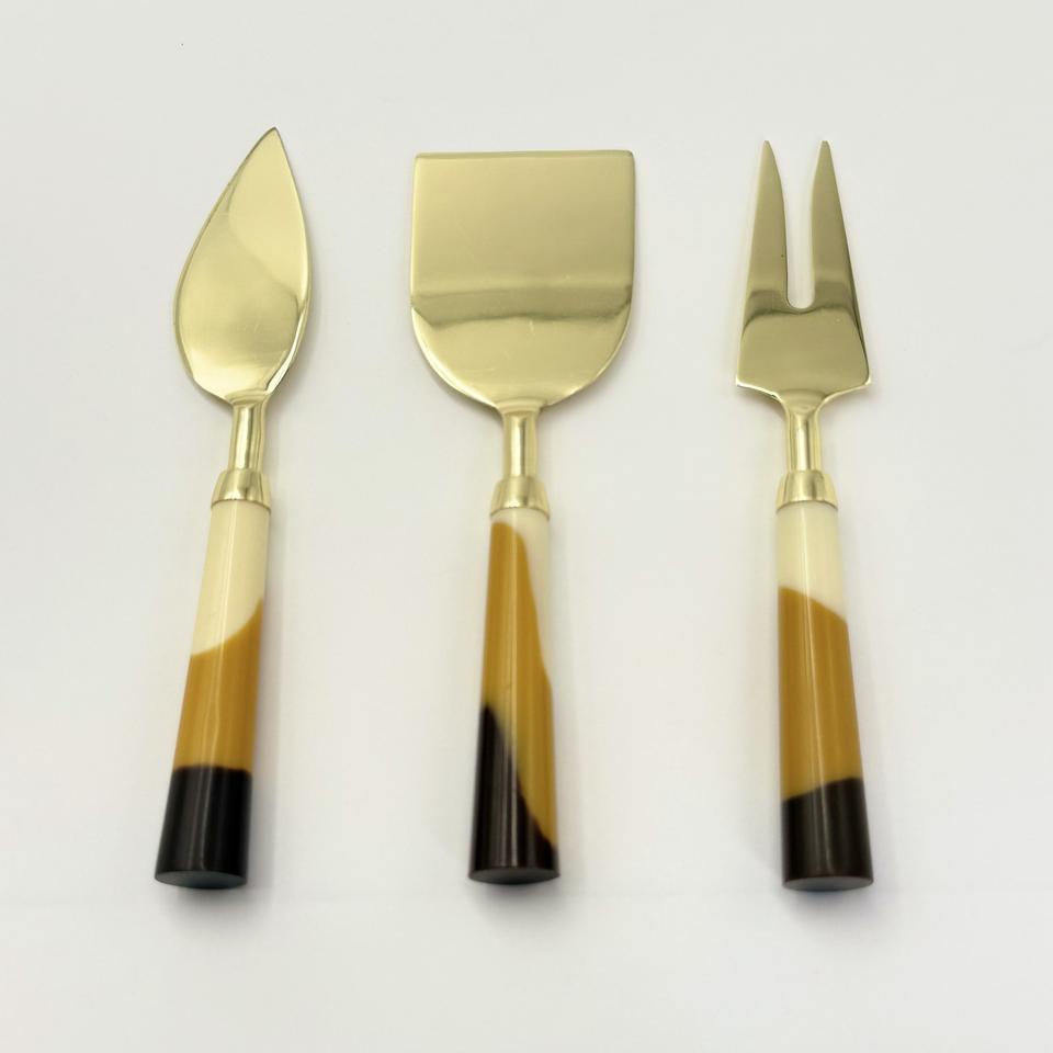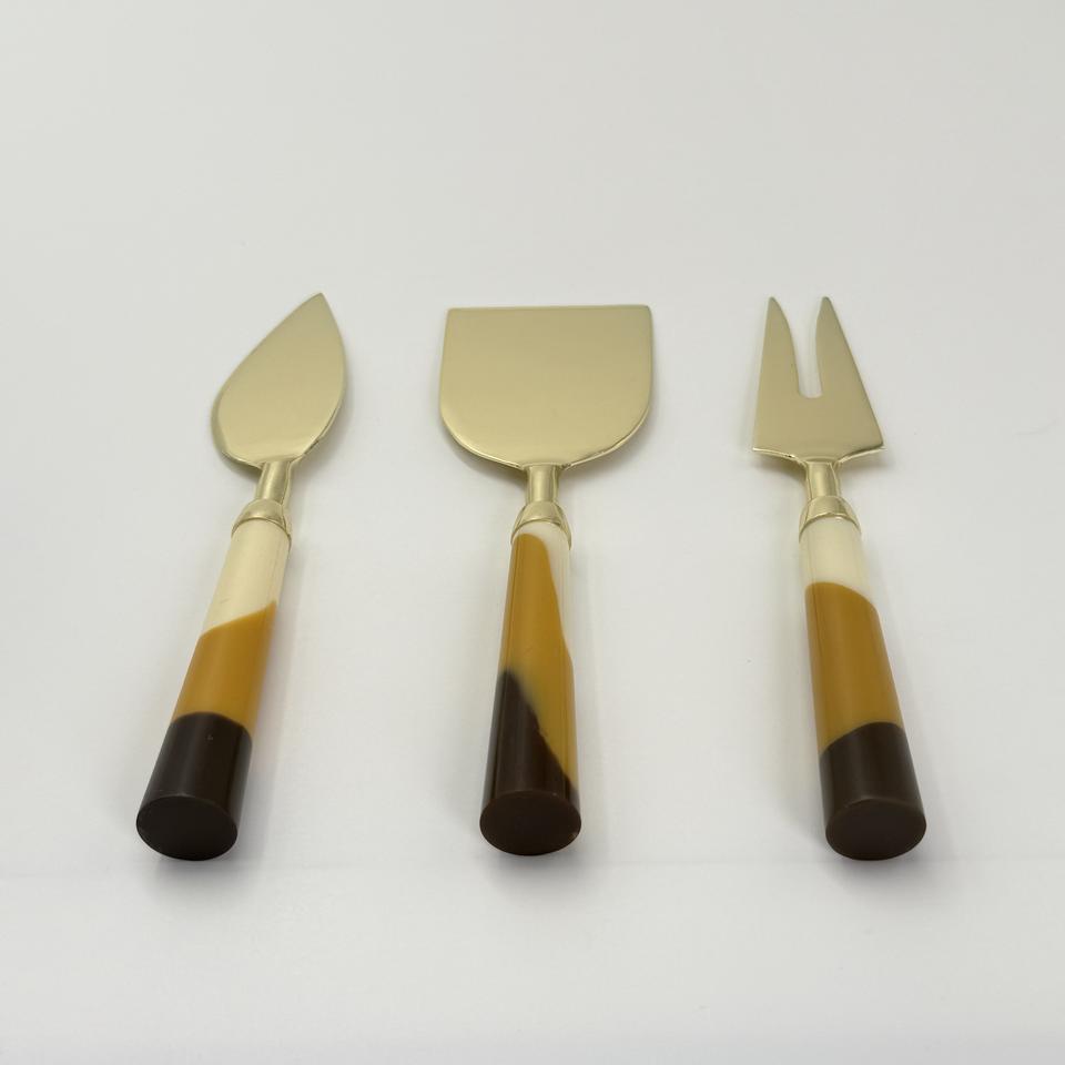 Juego de Cuchillos para Quitar Queso de Color Dorado de Primera Calidad con Mangos de Resina, Ideal para Uso en Restaurantes y Hoteles, Recubrimiento PVD Dorado