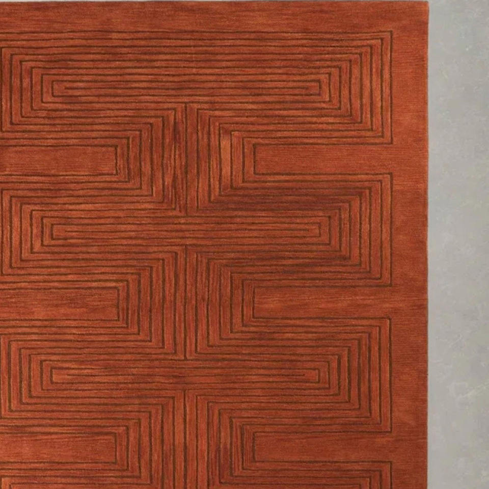 Alfombra de Lana Hecha a Mano de Primera Calidad | Diseño Geométrico de Laberinto en Estilo Modernista | Precios al por Mayor Directos de Fábrica