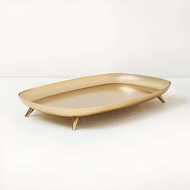 Bandeja Rectangular de Latón Dorado Hecha a Mano de Primera Calidad para Servir Aperitivos y Decoración, Decoración para el Hogar, Hotel y Restaurante