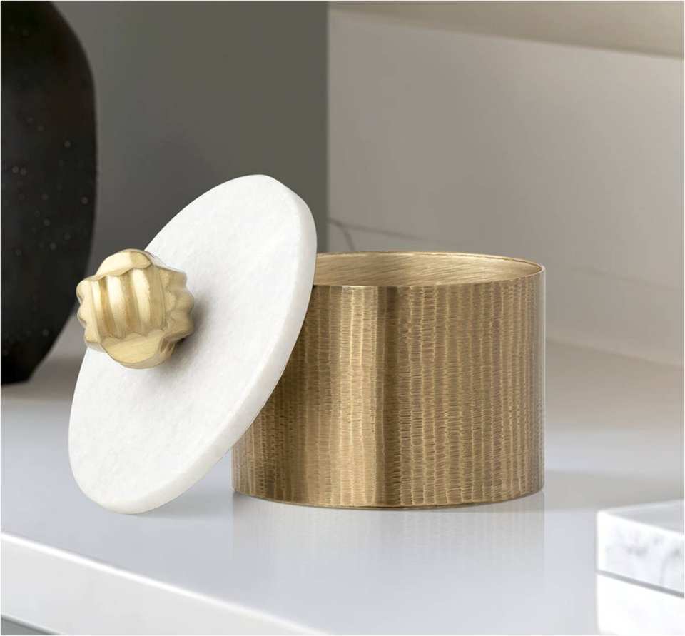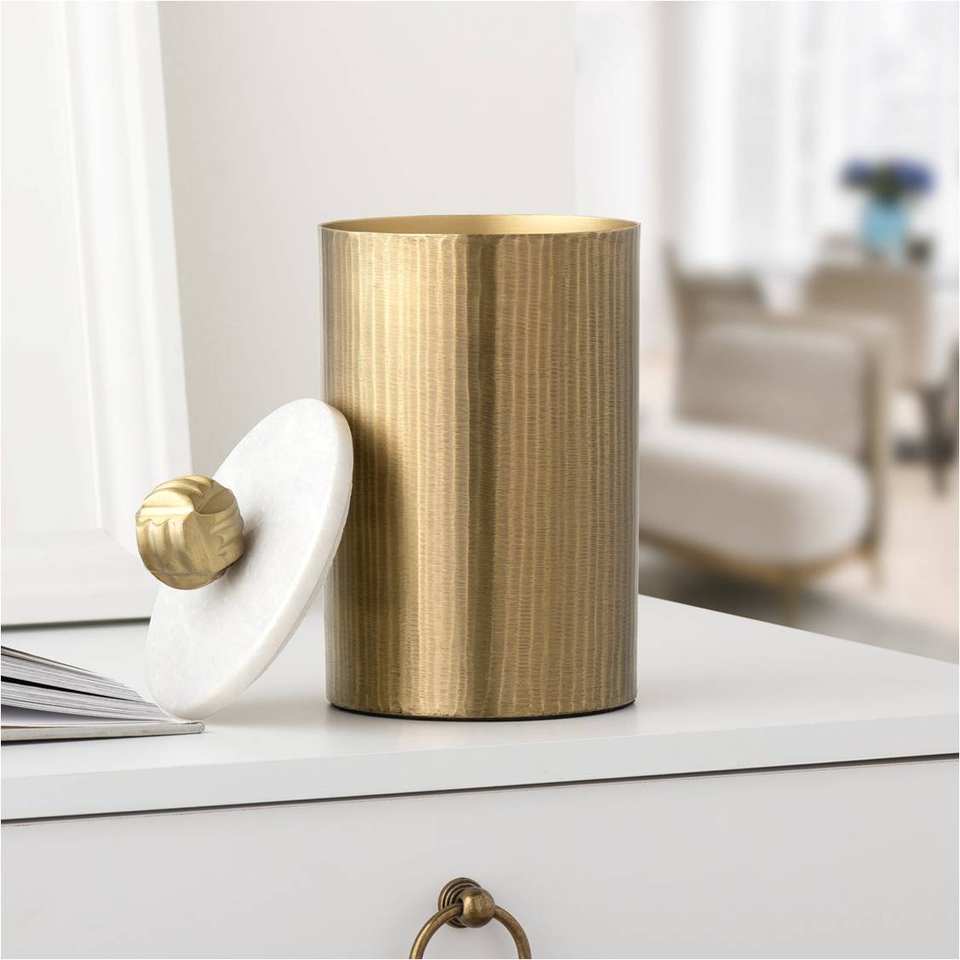 Juego de 3 tarros de aluminio acanalado hechos a mano de calidad premium con tapa de mármol