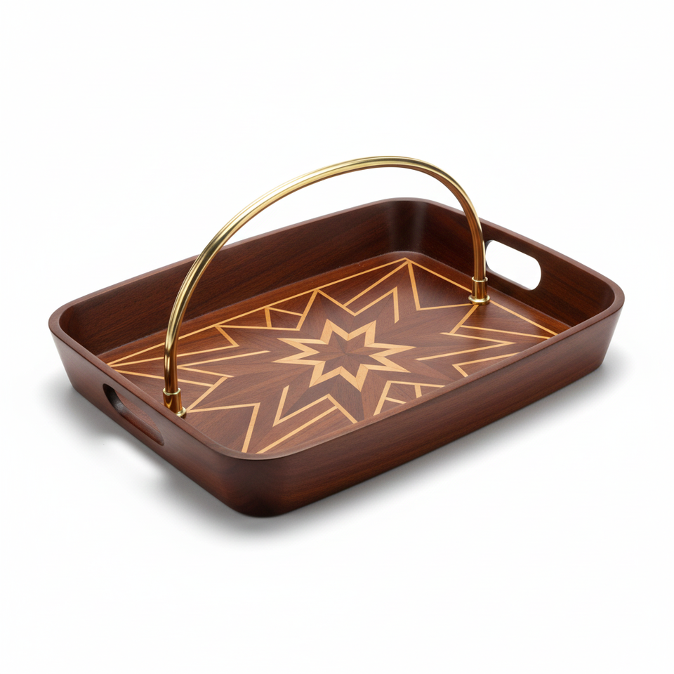 Bandeja de Servir Moderna, Ecológica, Hecha a Mano con Madera Maciza de Primera Calidad para Cocina, Comedor, Té, Café, Desayuno, Decoración del Hogar