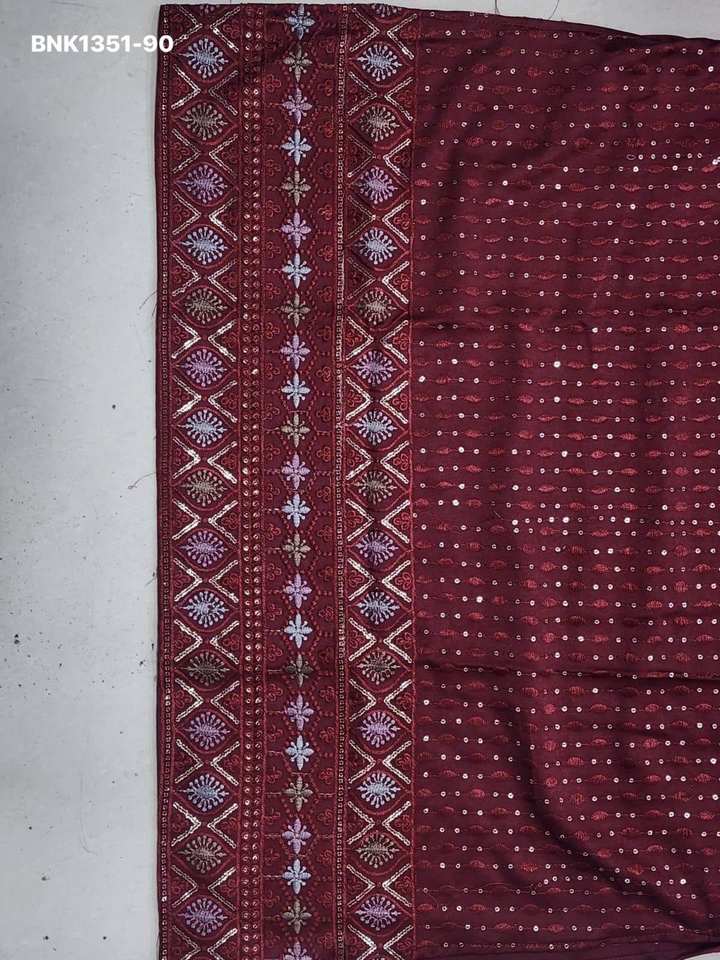 Nombre del producto:Kurta de manga larga de seda con trabajo de hilo y lentejuelas - Pijama de algodón