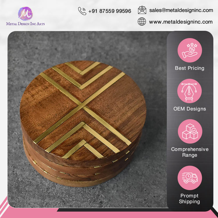 Nombre del producto:Posavasos de madera con trabajo de incrustación de latón
