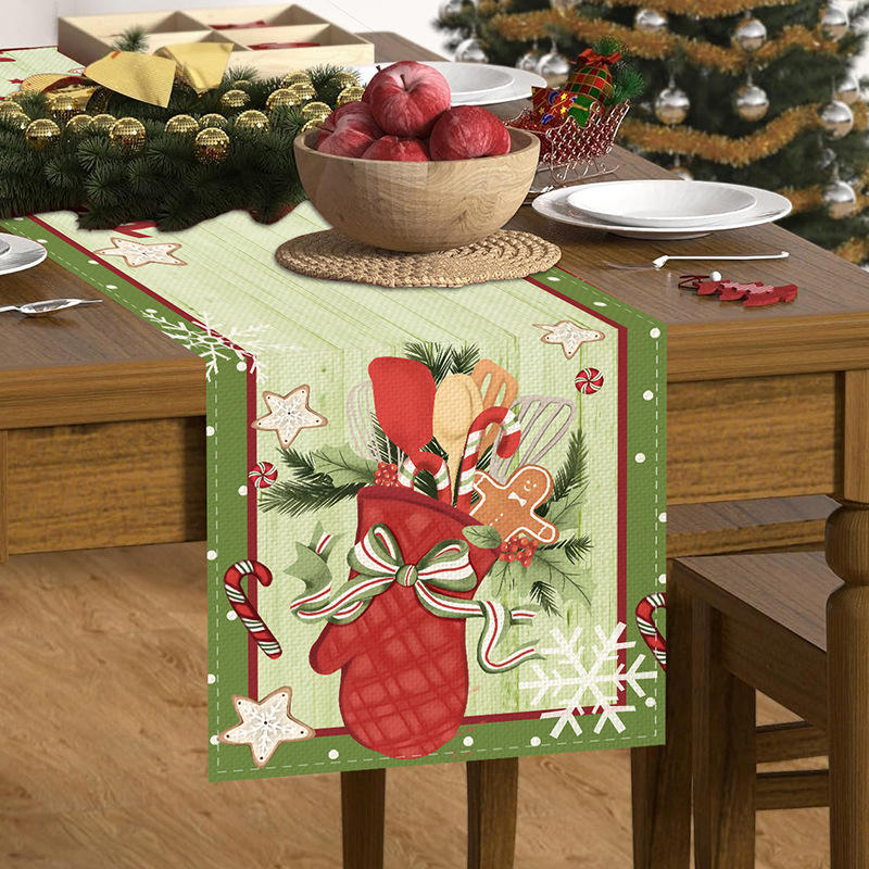 Nombre del producto:Mesa DE LINO DE Navidad Corredor de mesa de cocina ChristmasSanta Claus