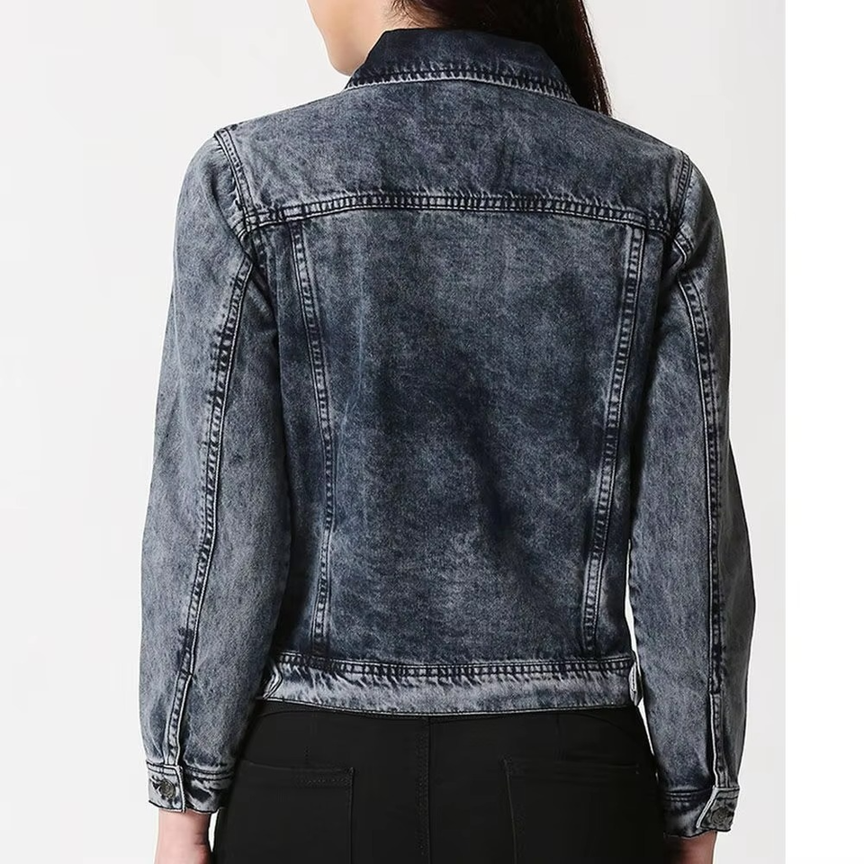 Chaqueta Vaquera de Primera Calidad para Mujer, Diseño Nuevo y Elegante, Cómoda, de Cuero Genuino, Encaje, Algodón Lavado, Tejido de Punto, para Invierno