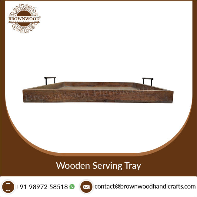 Product Name:Wooden Large Serving Tray with Metal Handles