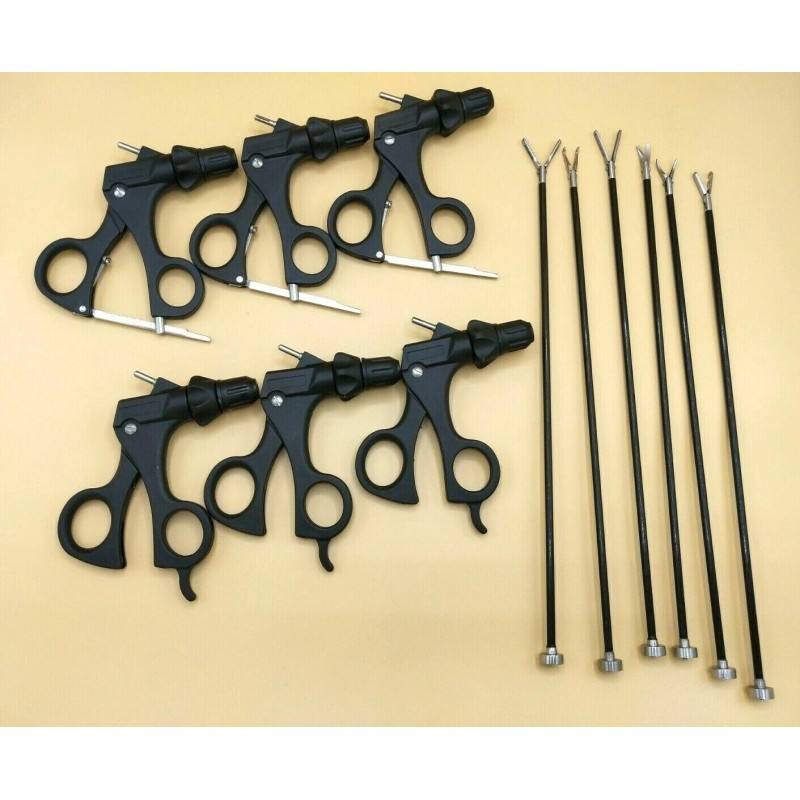 Juego de Pinzas de Laparoscopia Manual de Primera Calidad, 6 Instrumentos Laparoscópicos de Acero Inoxidable Alemán, 5 mm x 330 mm, Autoclave, Vaslcare