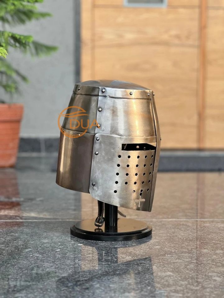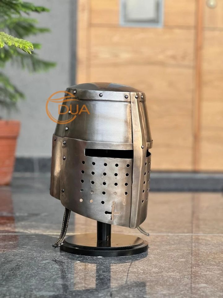 Calidad superior Medieval Crusader Knight Templar Great Helm Wearable Metal Armor Iconic Bucket Helmet
