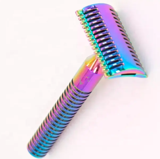 Maquinilla de afeitar de seguridad para hombres de calidad superior Acero inoxidable Color arcoíris Doble filo Hoja doble Belleza Cuidado personal Característica ANAAIF