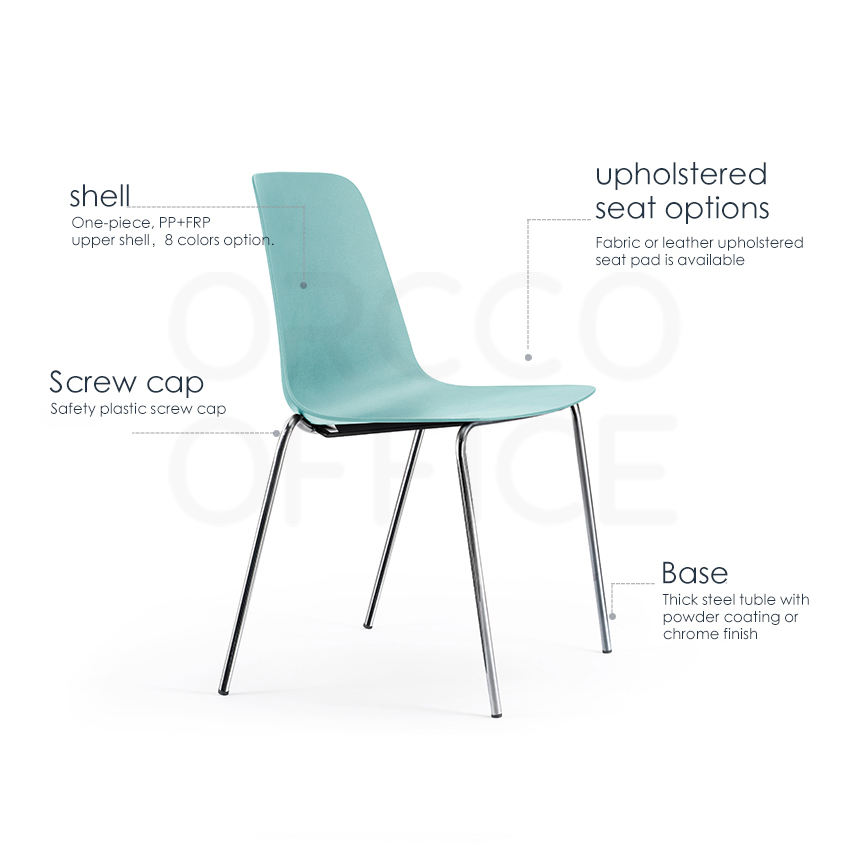 Silla de comedor apilable de plástico PP moderna de calidad superior con patas de acero metálico para cafetería restaurante cafetería cocina muebles para el hogar