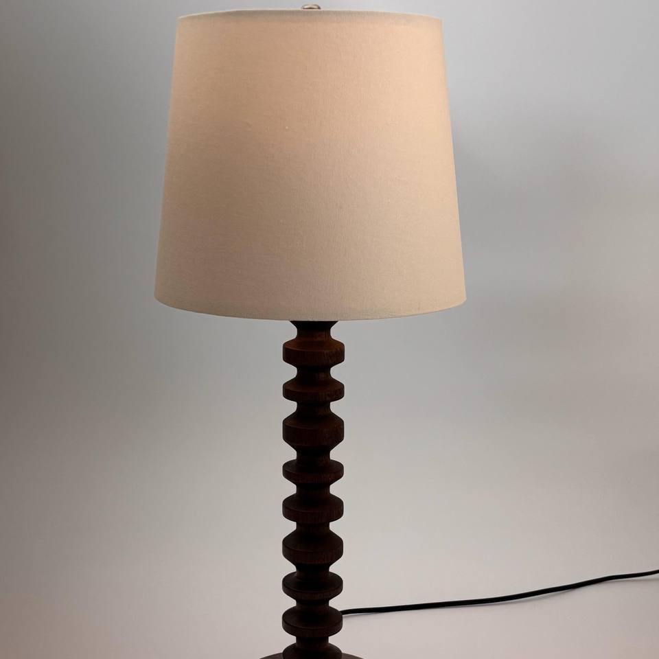 Lámpara de Mesa Moderna de Nogal de Primera Calidad Diseñada para Decoración del Hogar con Pantalla de Lino, Acabado Liso y Base Redonda Estable