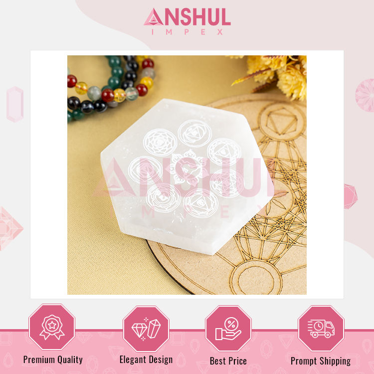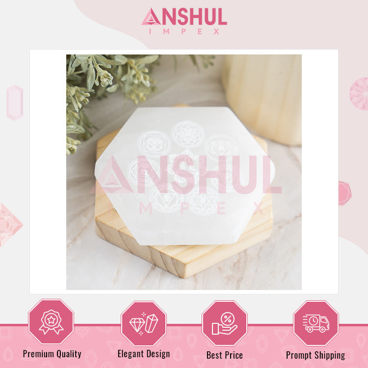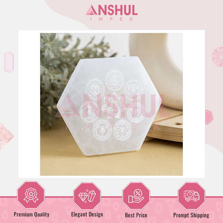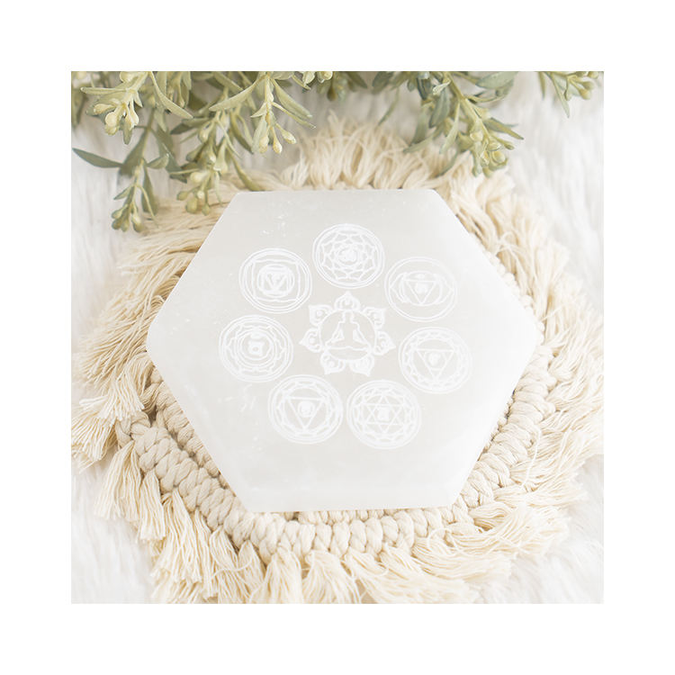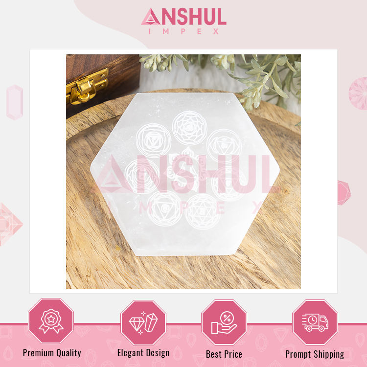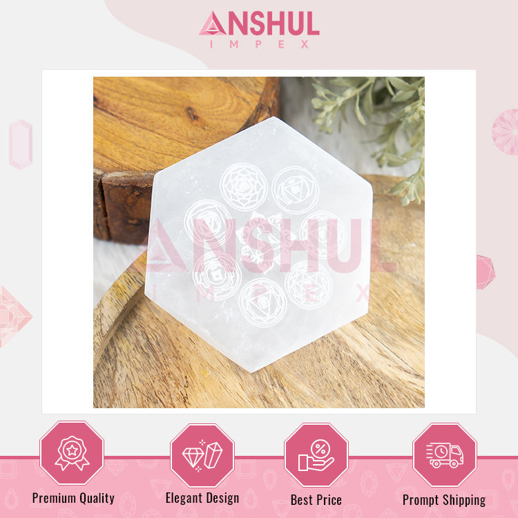 Nombre del producto:Placa hexagonal de selenita de 4 pulgadas con 7 chakra