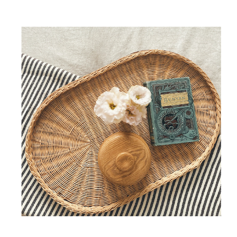 Bandeja de Servir de Ratán Natural de Primera Calidad con Asa de Madera, Cesta Organizadora Rústica para Té y Aperitivos para Uso en la Mesa de la Cocina