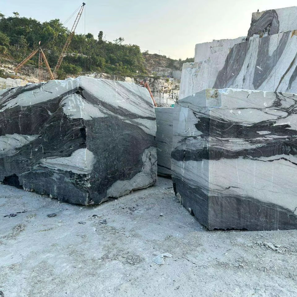 Bloque crudo de mármol blanco Panda de calidad superior para losas, azulejos, encimeras, pisos, cocina, baño