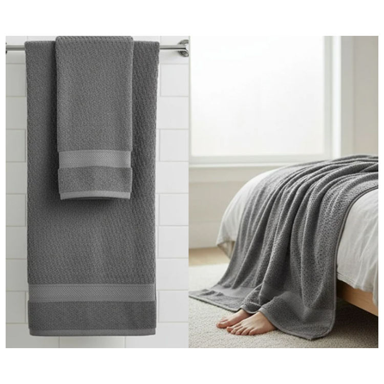 Toalla de Baño de Primera Calidad Hecha de Polialgodón con Acabado Lavado y Acabado de Velour - Suave para la Piel, Ecológica, de Exportador Indio