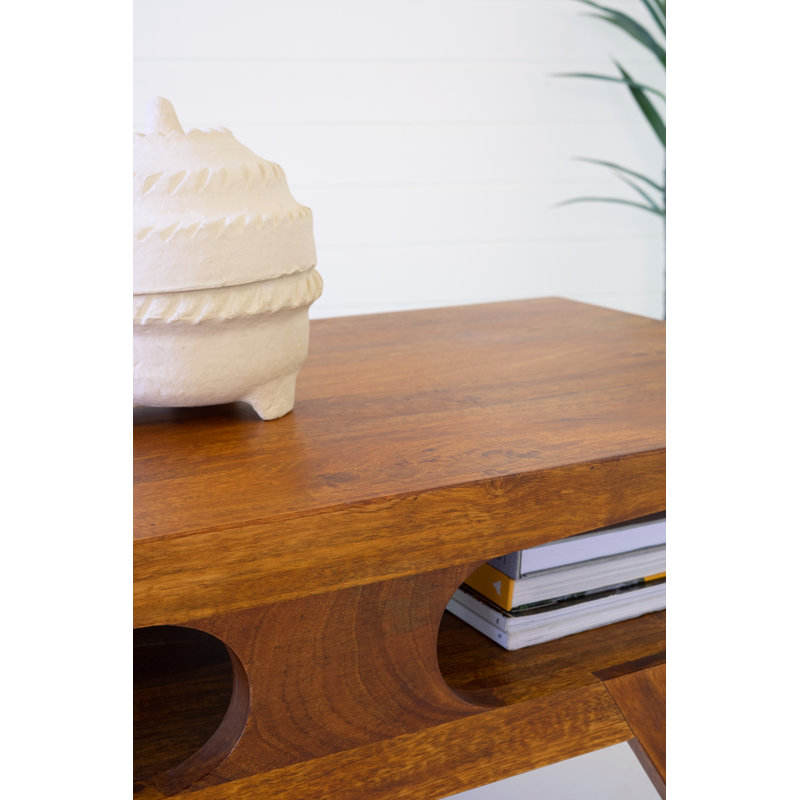 Mesa de centro de madera de mango portátil de calidad superior con acabado de teca para la decoración de la sala de estar o la oficina del hogar