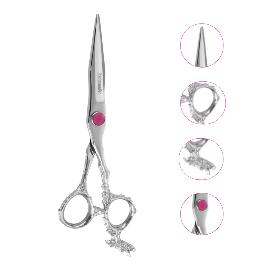 Tijeras de corte de pelo con mango elegante profesional de calidad superior de acero inoxidable para uso en salón y peluquero