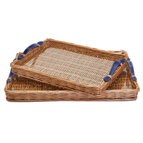 Bandeja de Servir de Ratán Tradicional de Primera Calidad, con Asas de Madera Maciza, Fibra Natural, Hecha a Mano, para Servir Té y Aperitivos en el Hogar