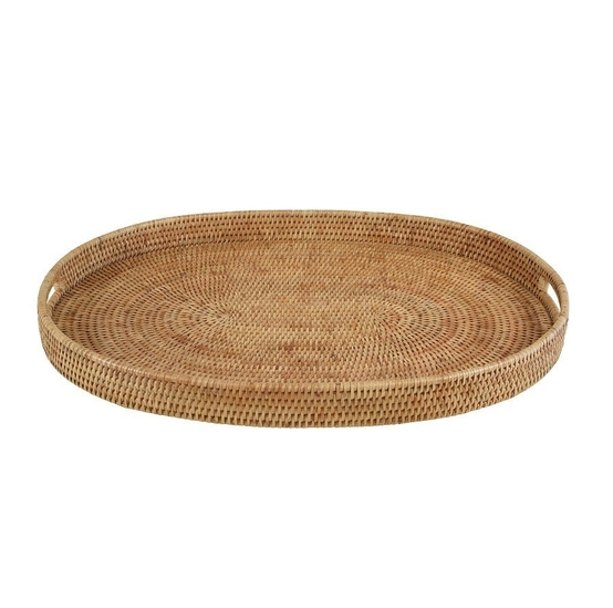 Bandeja de servir y almacenamiento de ratán tejida a mano de calidad premium para té, café, aperitivos, desayuno, estilo boho, para mesa de café y comedor.