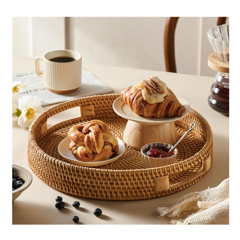 Bandeja Rectangular de Ratán de Primera Calidad, Tejida a Mano, con Asas de Madera, Ecológica, para Servir Té, Café y Decoración de Cocina