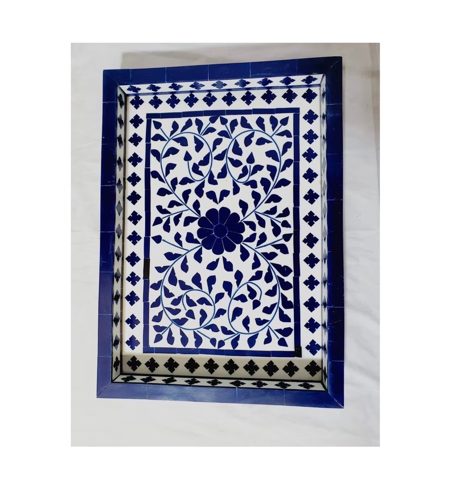 Bandeja para servir con incrustaciones de resina y hueso de primera calidad, forma cuadrada, desayuno, cena, granja, comedor y sala de estar, bandeja decorativa