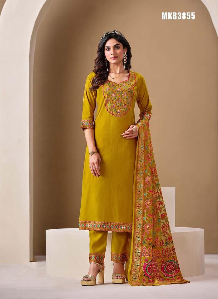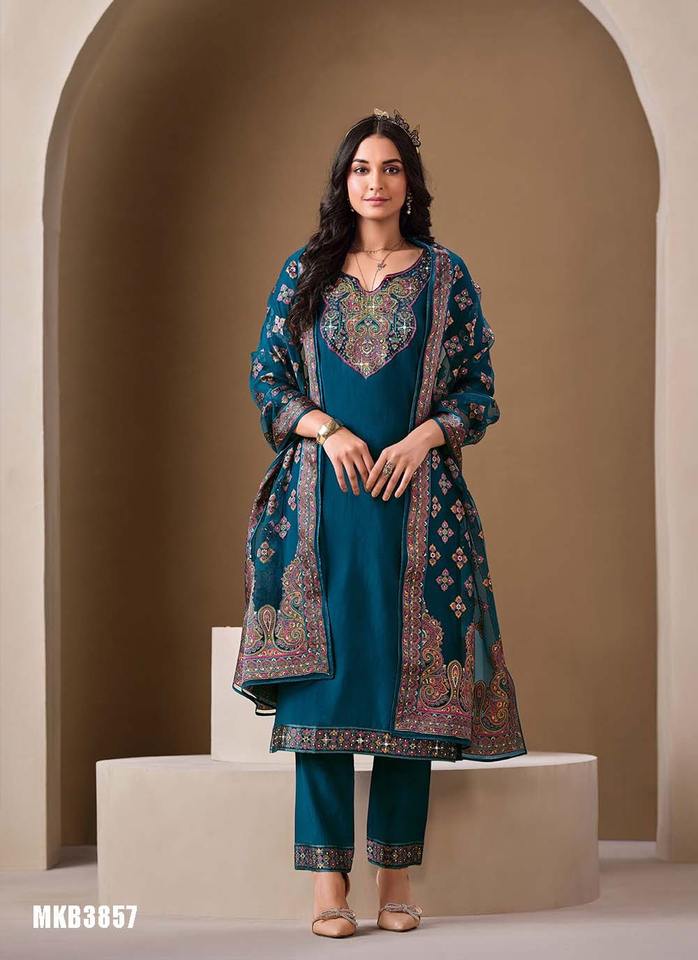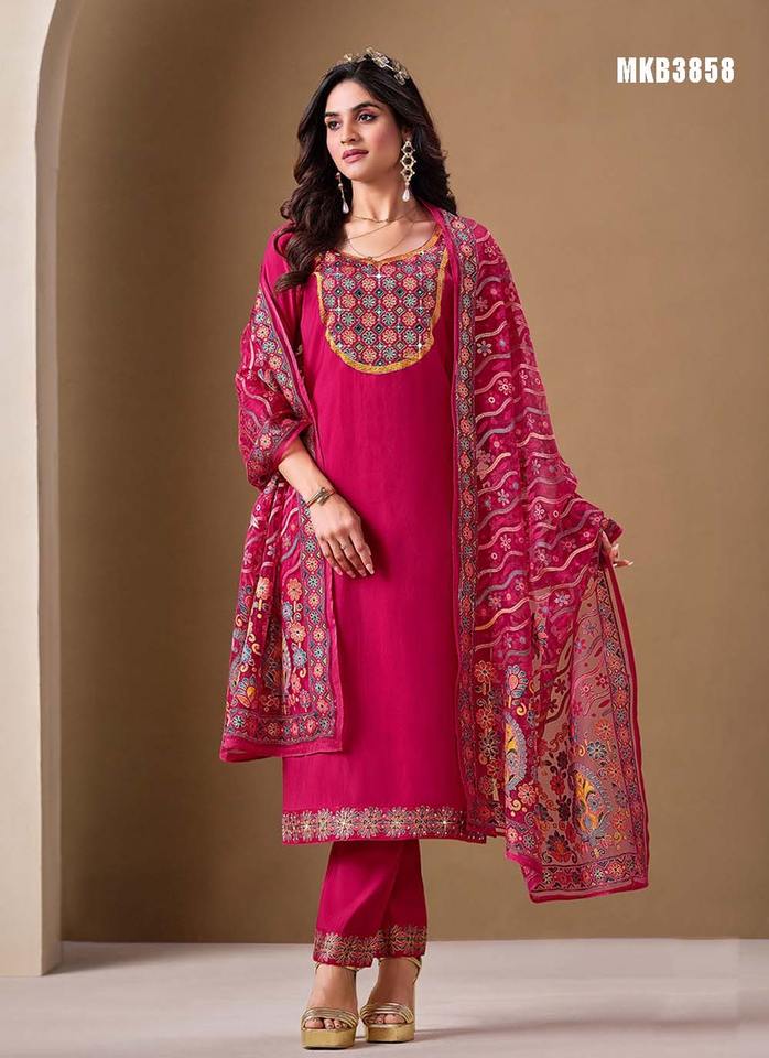 Roma Silk With Mirror Embroidery Kurti Pant And Dupatta