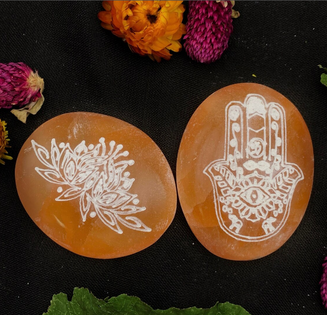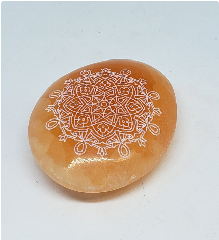 La piedra de Palma selenita roja-diseño de mandala grabado con láser
