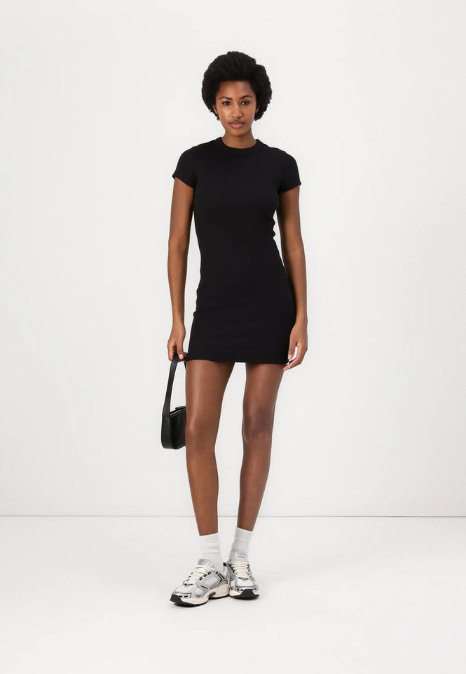 Vestido Ajustado de Manga Corta con Textura Acanalada de Primera Calidad, Vestido Mini Ajustado, Producción de Marca Privada
