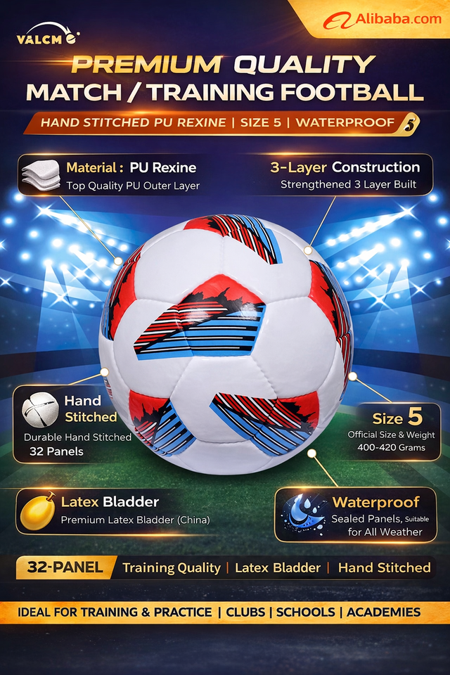Balón de Fútbol de Primera Calidad, Talla 5, Cosido a Mano, PU Rexine | Panel 32 | Bolsa de Látex | Impermeable | Alto | Logotipo Ligero