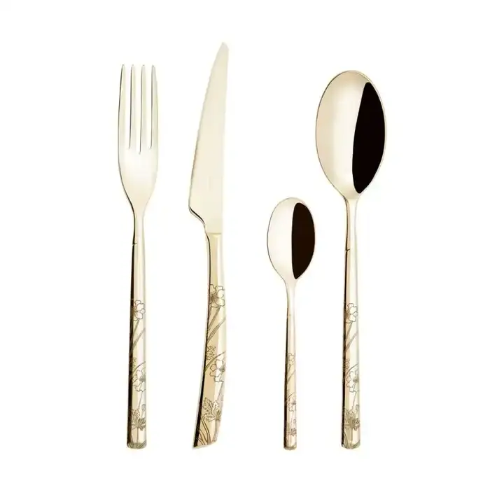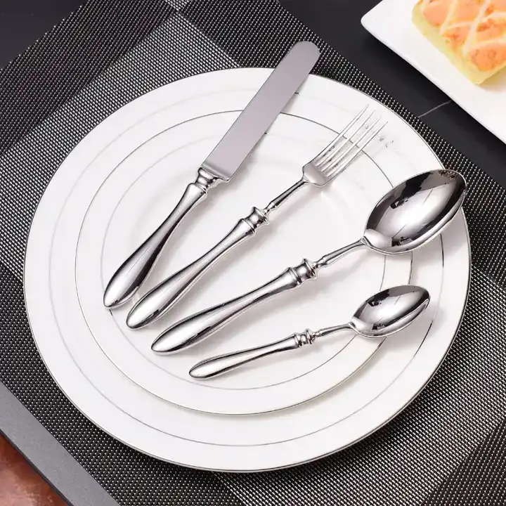 Juego de Cubiertos de Acero Inoxidable Ecológicos de Primera Calidad, Diseño Moderno con Mango Largo, Acabado Pulido Espejo, para Bodas y Uso Diario