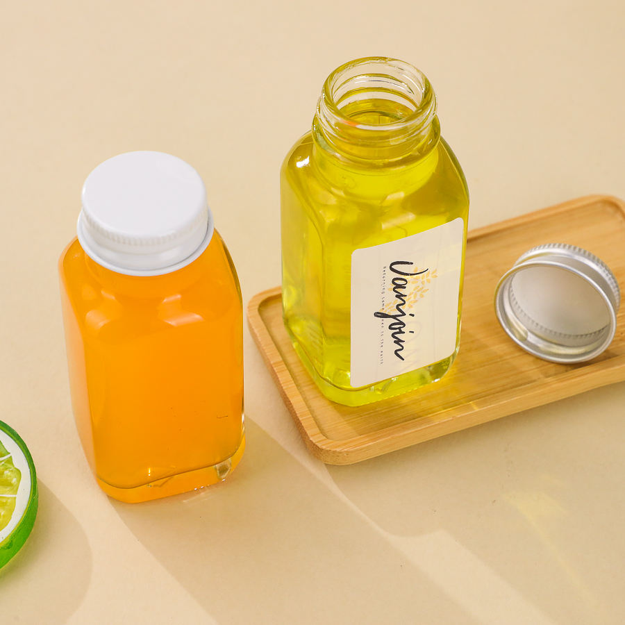 Vasos de Chupito Cuadrados Franceses Transparentes de Primera Calidad, Mini Botellas de 2 oz para Jugo Prensado, Botella para Jengibre con Tapa