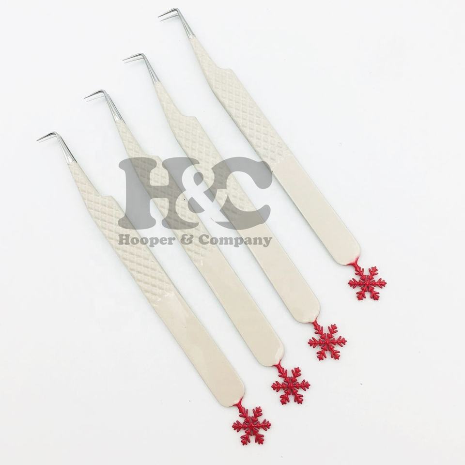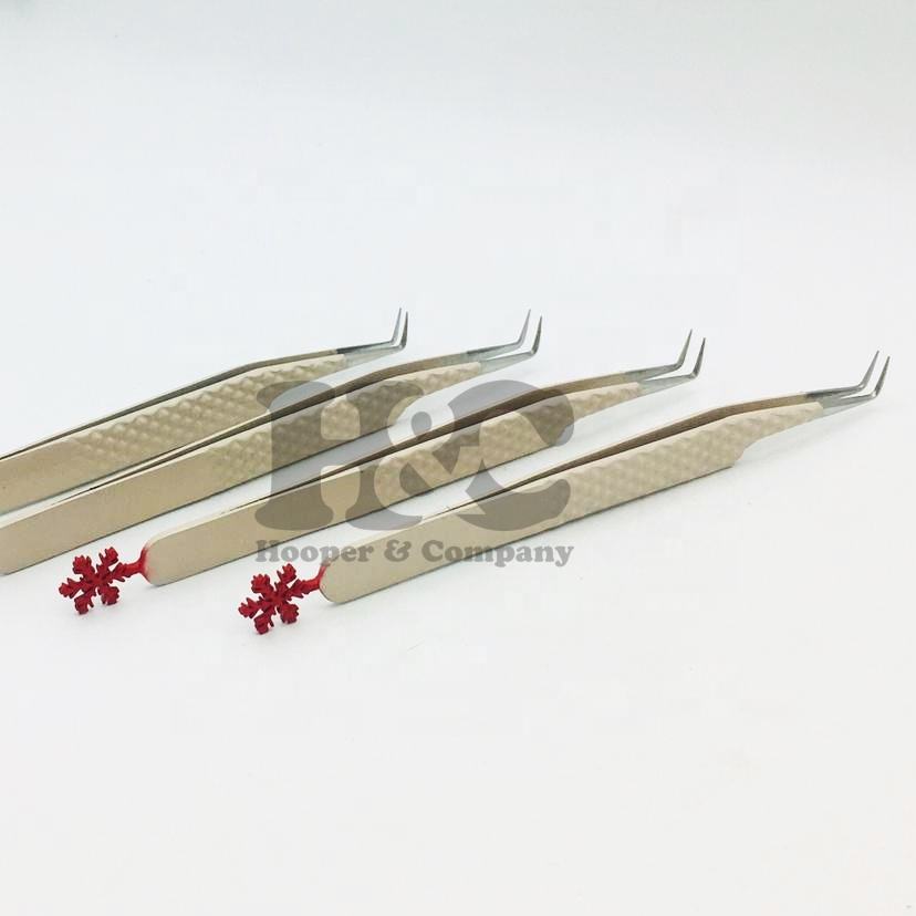 Pinzas puntiagudas de calidad superior, copos de nieve, extensión de pestañas personalizada de acero inoxidable, pinzas antimagnéticas, logotipo de visón
