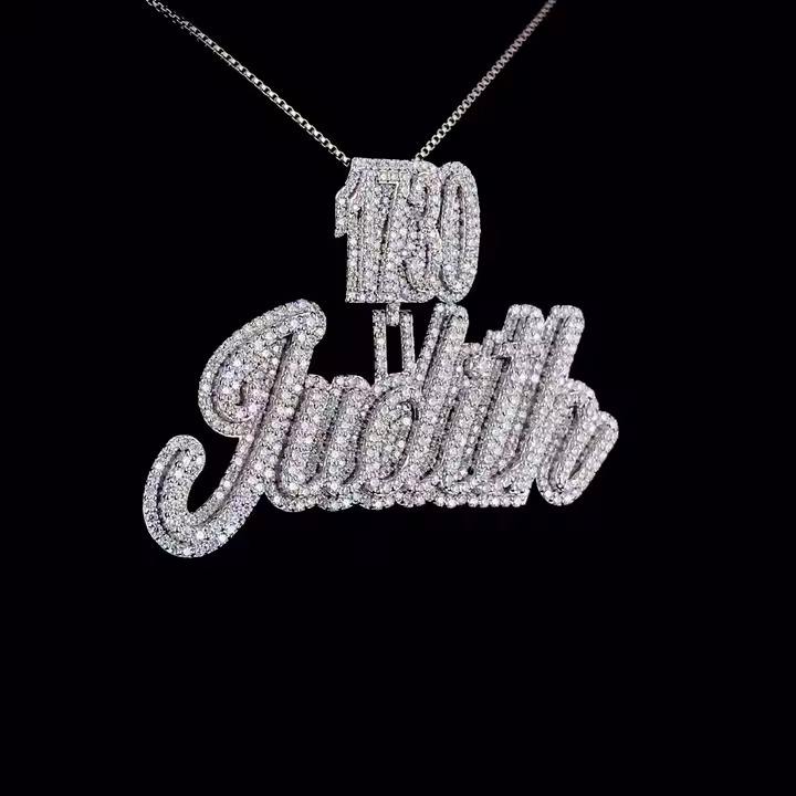 Colgante de Letra Judith de Alta Calidad Unisex Estilo Hip Hop con Cierre Personalizado, Plata de Ley 925, Moissanita VVS Disponible a Precio de Exportación