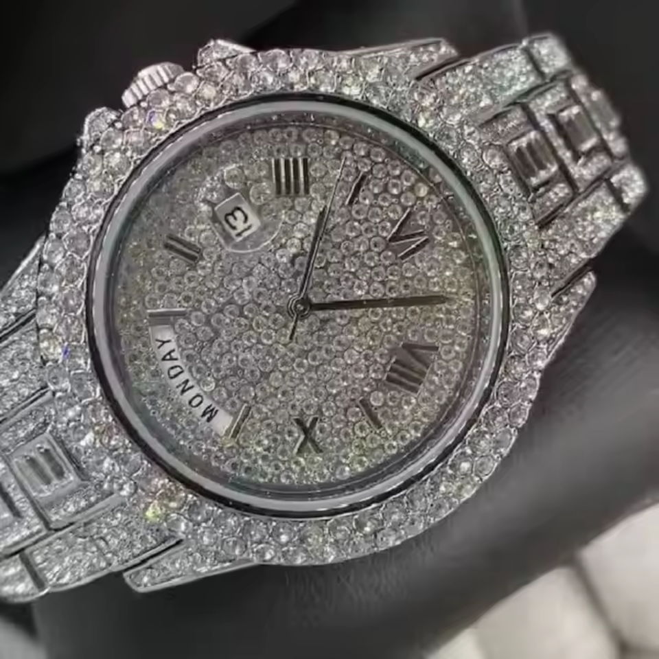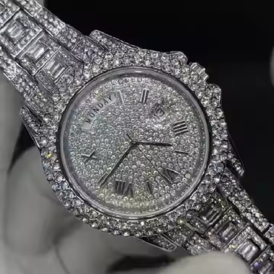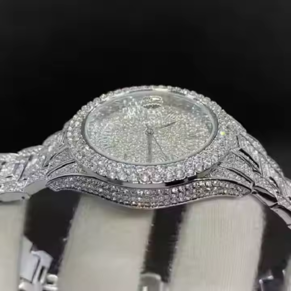 Reloj de diamantes VVS Moissanite de calidad superior para hombre elegante de lujo de acero inoxidable Material de cuarzo estilo de moda de negocios