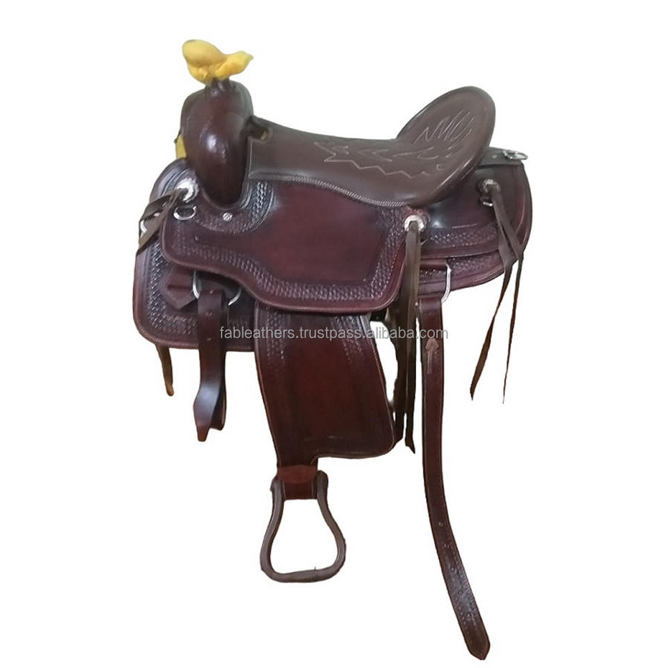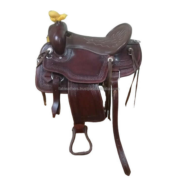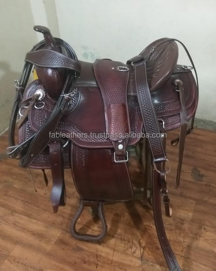 Sillín de cuero occidental de calidad superior para montar a caballo con juego de tachuelas de caballo a juego Sillín occidental de cuero para Senderos de caballos