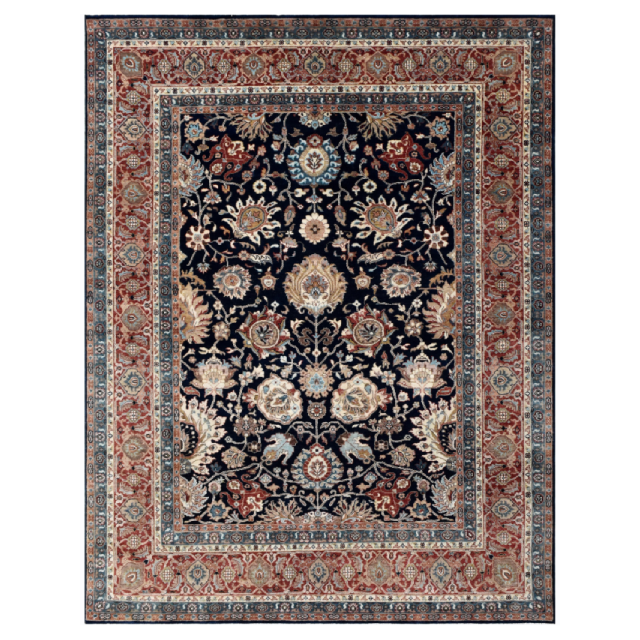 Alfombra de Lana y Seda de Primera Calidad, Tejida a Mano, Diseño Clásico, Azul Multicolor, Alfombra de Lujo para Sala de Estar, Hogar, Ejercicio, Cocina