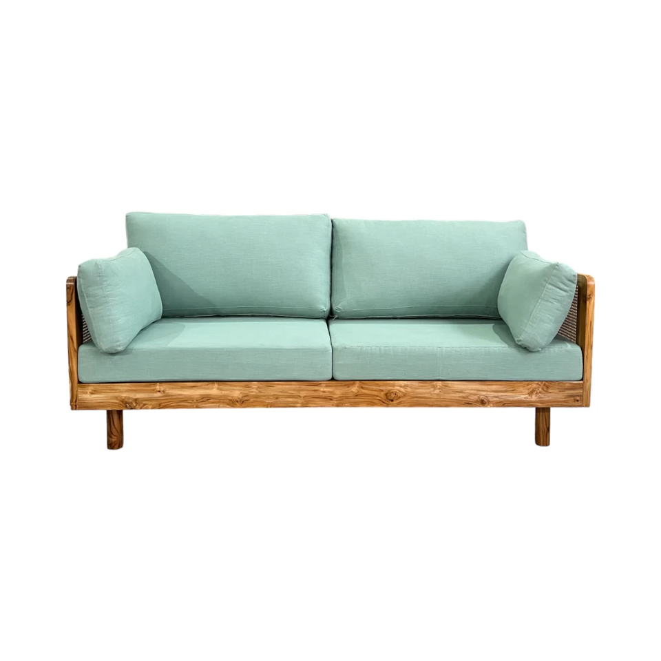 Sofá de ratán premium de 3 plazas con diseño tejido duradero, cojines cómodos, perfecto para espacios interiores y exteriores.