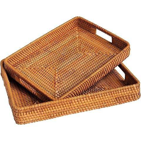 Juego de Bandejas para Servir Té de Ratán Premium, Diseño Tejido Duradero, Perfecto para Comida, Decoración para Ramadán y Eid, Uso en el Hogar y la Cocina