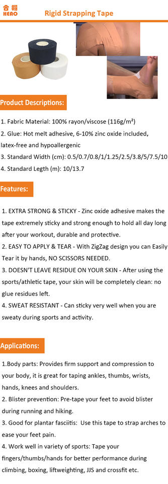 Cinta de Rayón Rígida Premium con Tela Resistente y Adhesivo Transpirable de Óxido de Zinc Termofusible para Rugby, Fútbol y Béisbol