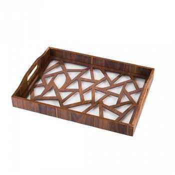 Bandeja Rectangular Premium Negra con Diseño Paisley y Asas Recortadas, Bandeja de Melamina de Lujo para Mesa de Centro o Almacenamiento