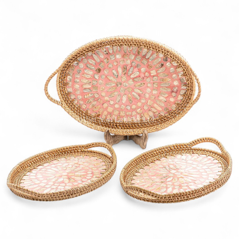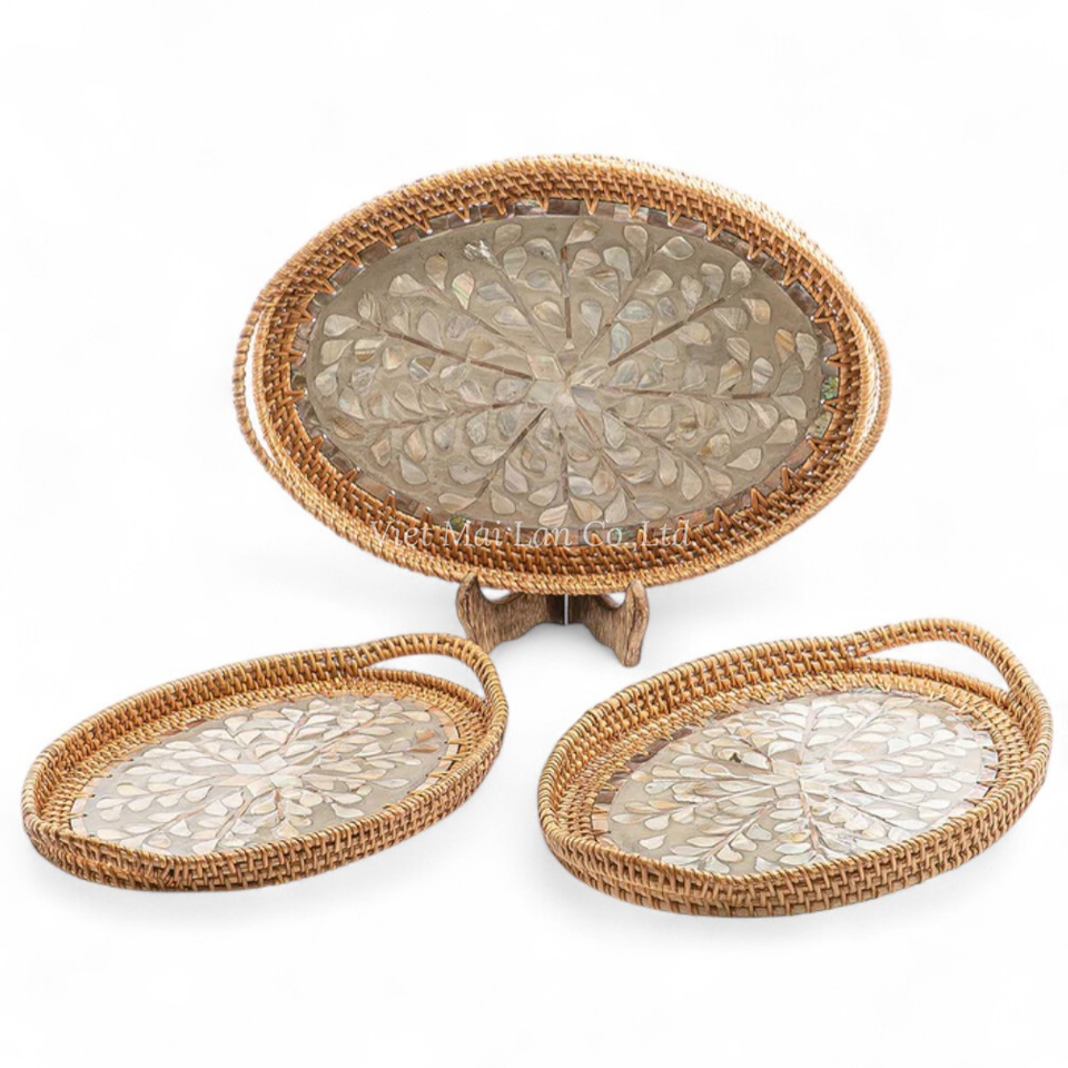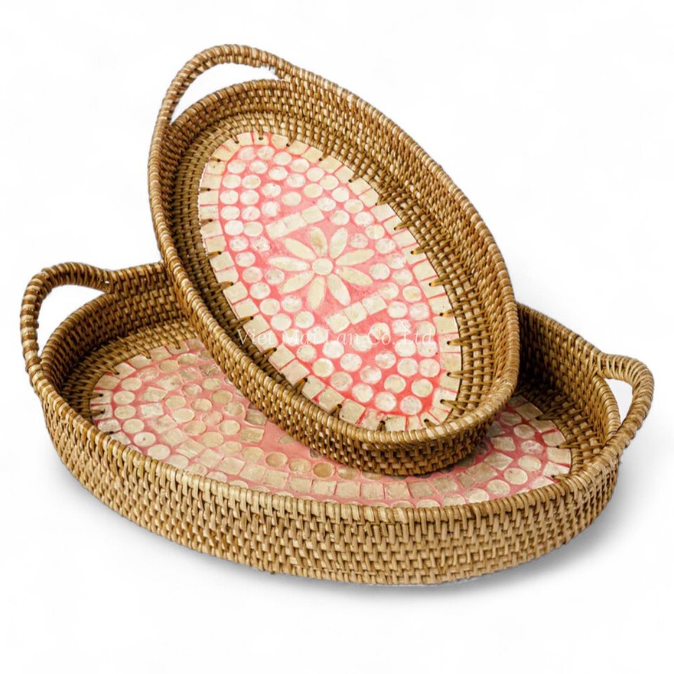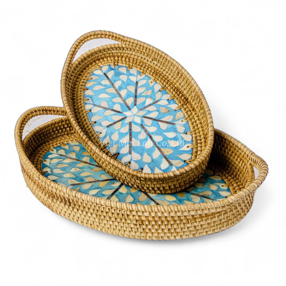 Bandeja Rectangular Premium de Ratán con Incrustaciones de Nácar, Suministro al por Mayor para Hoteles, Restaurantes y Servicios de Catering